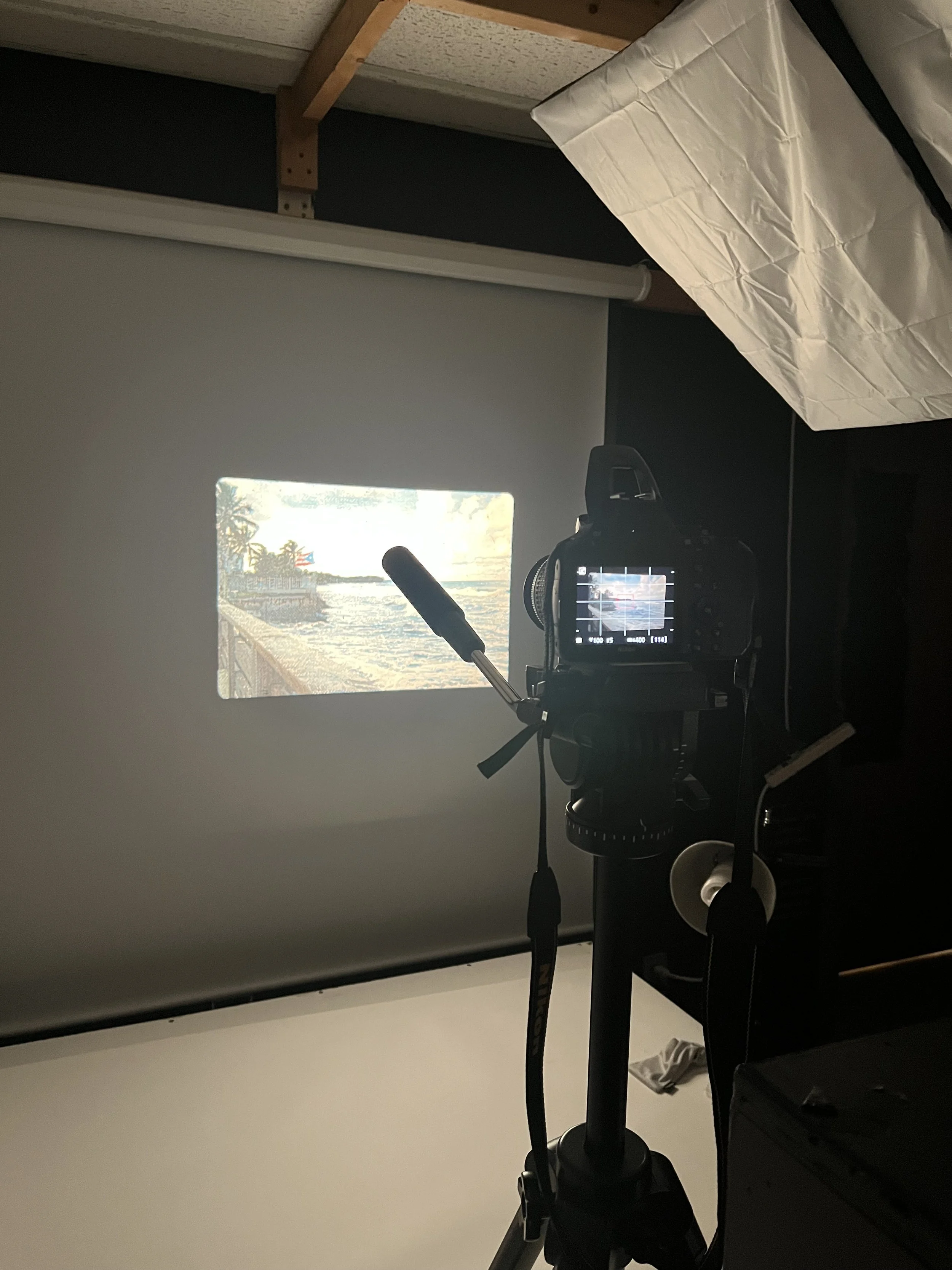 For the promotion video, I used two different vintage projectors (a carousel and overhead) to project my images. Taking apart old photo slides, I created my slides with transparency paper but found the quality suffered. After some troubleshooting and a different projector later, I was able to create the vintage, hazy look I wanted and use these larger transparent photos to be revealed building up to the final call to action. This section took a lot of patience and quick troubleshooting. I also had to restructure my original solution I was so set on, which led me to create more effective work in the long run.